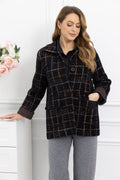 Stay warm and stylish with this chic women's plaid wool blend coat. Featuring a black and rust checkered pattern, button front, and cozy fold-over cuffs, this mid-length jacket pairs perfectly with both casual and dressy looks. Layer over your favorite tops and trousers for effortless fall and winter fashion.