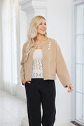 Wrap yourself in comfort and style with the Buttoned Breeze Jacket. This jacket offers the perfect balance of cozy warmth and modern flair. The cropped silhouette gives it a trendy edge, while the button decor adds a touch of sophistication and unique charm.