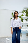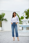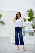 Elevate your style and sustainability with our Diamonds & Pearls Bamboo Denim. Made from soft and eco-friendly bamboo, these ankle-length jeans feature stunning crystal and pearl detailing for a touch of elegance. With a flattering wide leg cut, these denim jeans will keep you stylish and comfortable all day long.