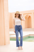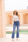 These flare jeans offer a practical, subtly flared leg that balances style and comfort without being over the top. Designed for easy wear, they feature dramatic pockets that add a fashionable edge while keeping the look simple and versatile. Perfect for everyday wear with a touch of flair.